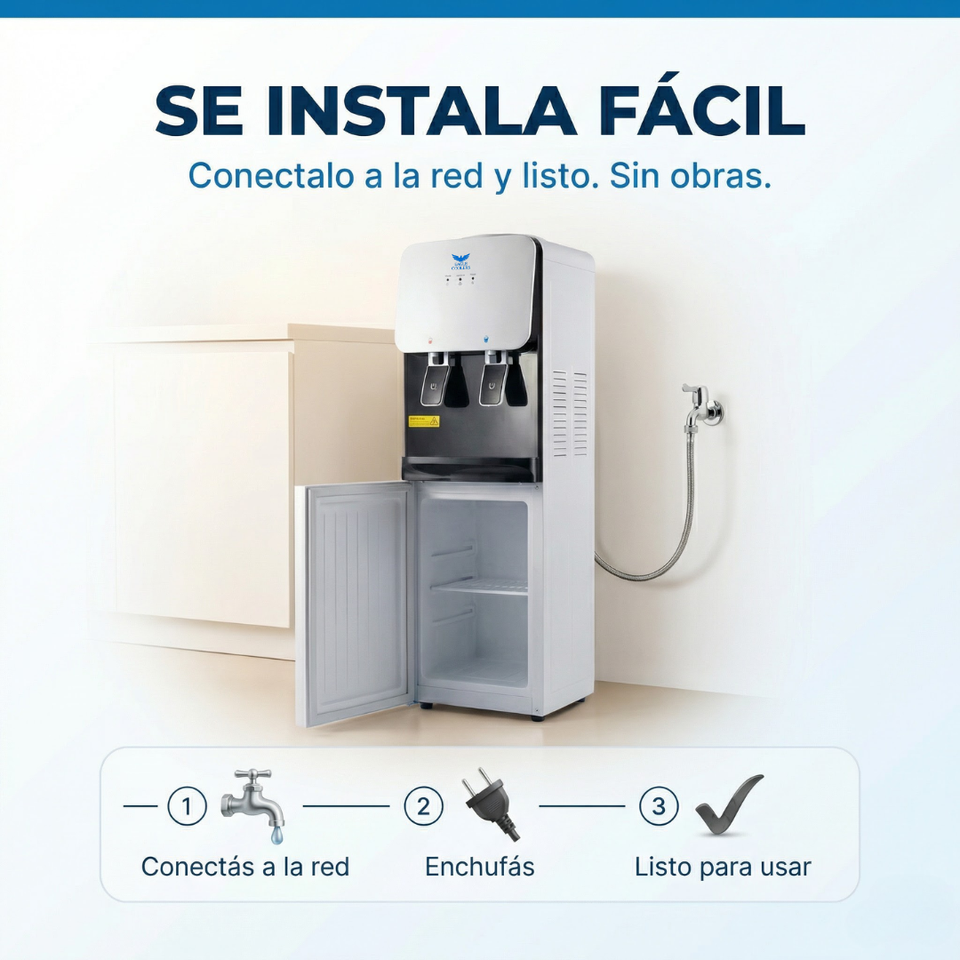 Agua purificada, fría o caliente, directo de tu canilla. Sin bidones, sin vueltas.