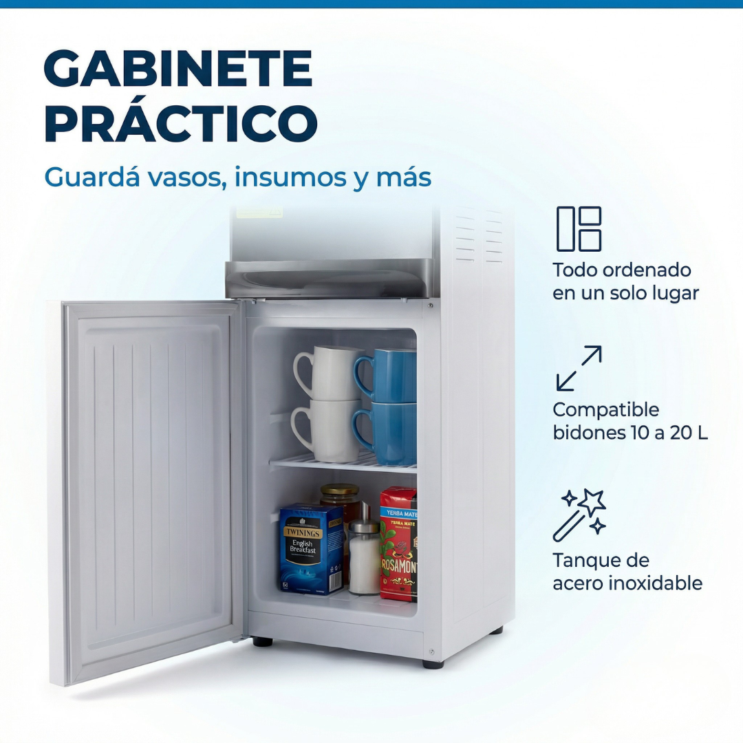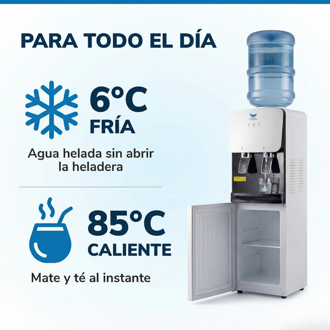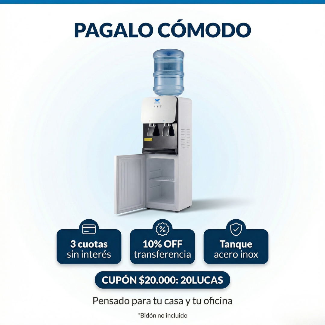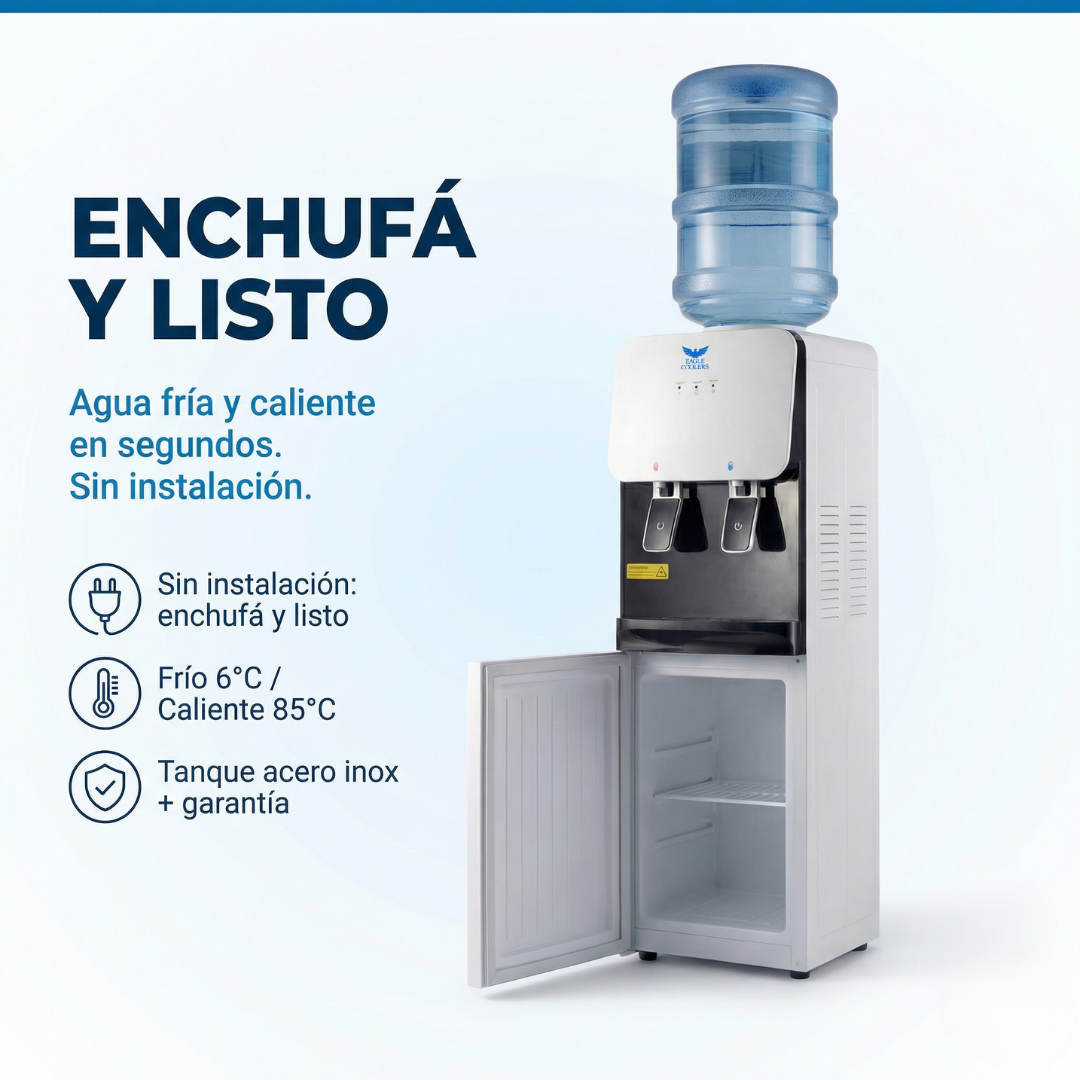 Enchufá, poné el bidón y listo. Agua fría y caliente en segundos. Sin instalación.