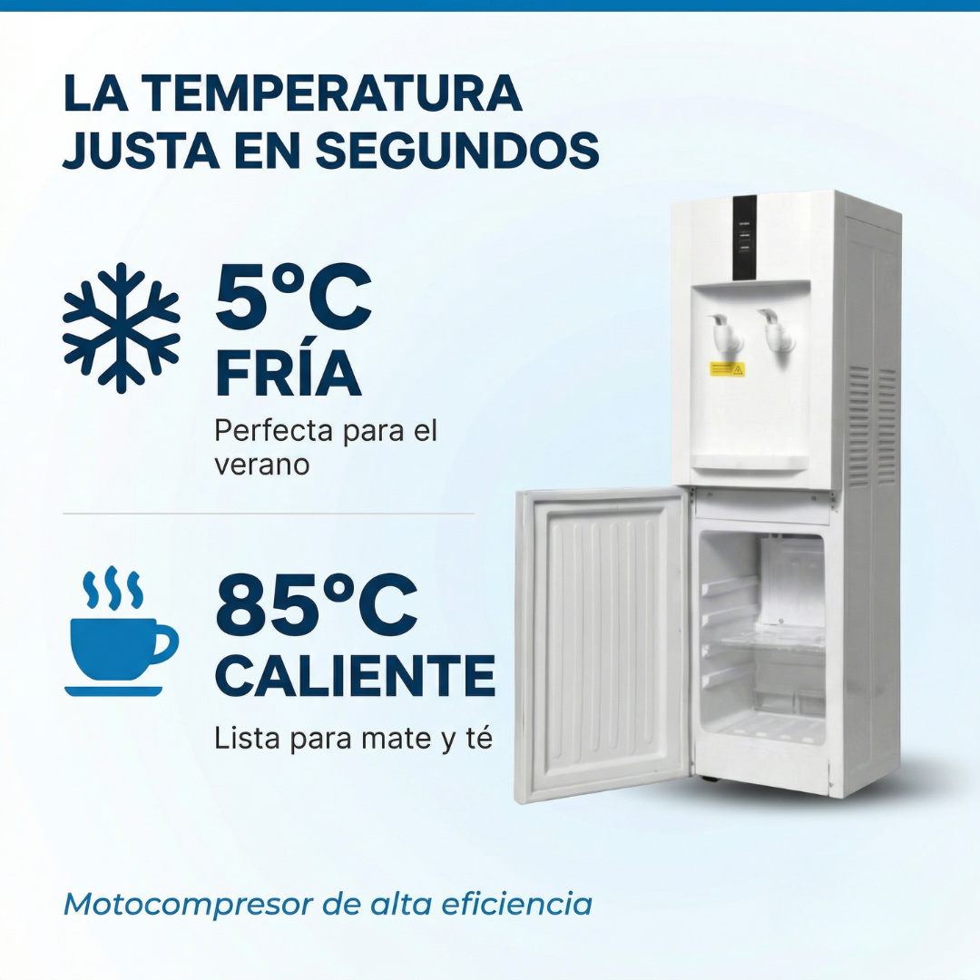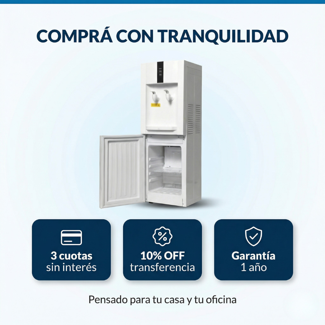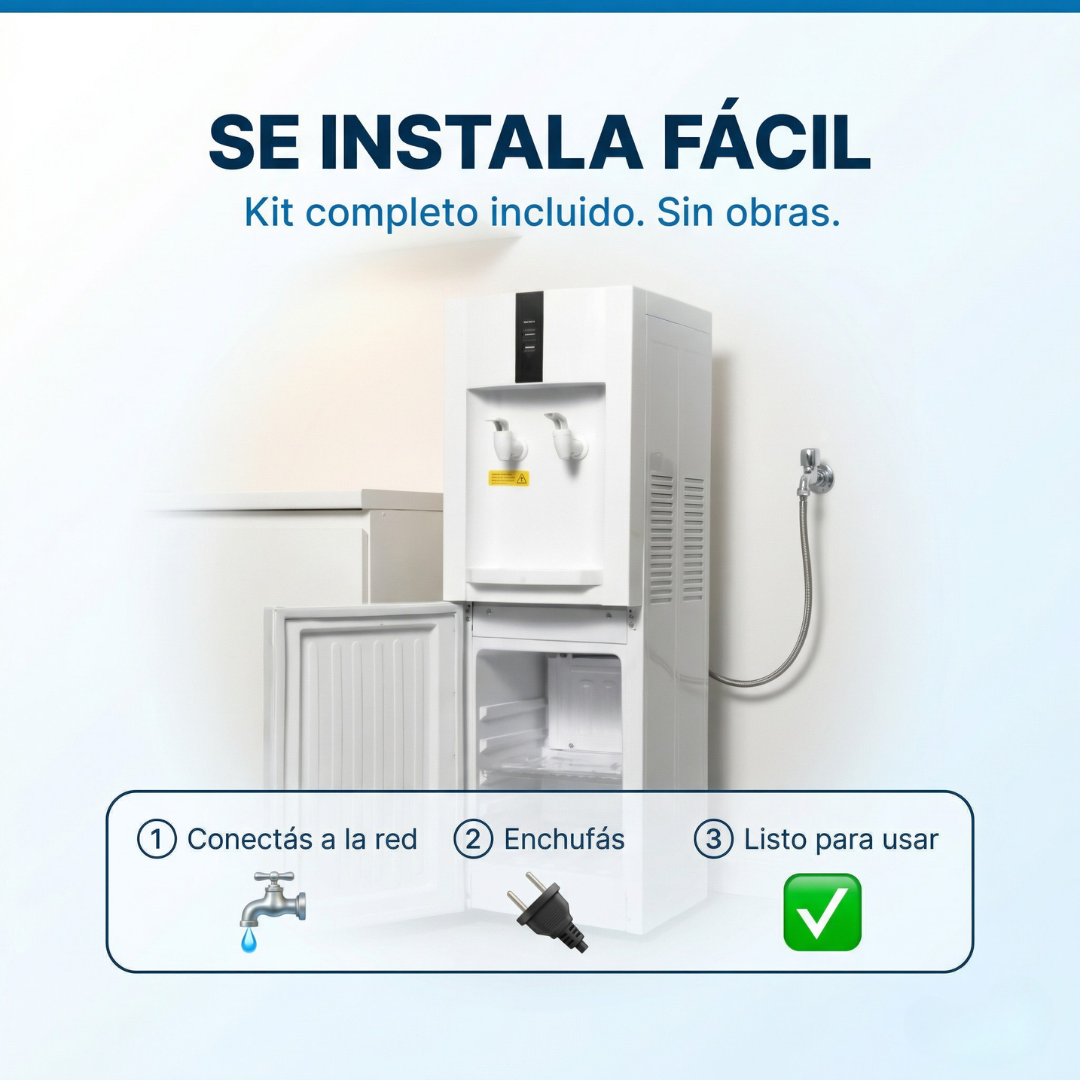 Agua purificada, fría o caliente, directo de tu canilla. Sin bidones. Con heladera integrada.