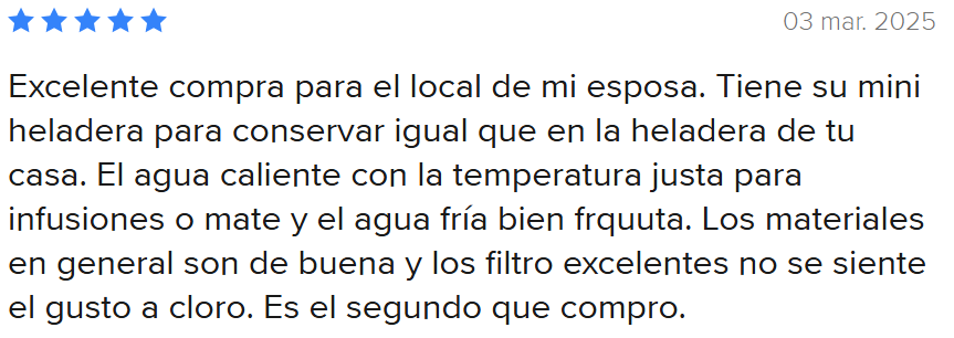Este equipo proporciona agua fría y caliente, y cuenta con una heladera integrada de 30 litros.
